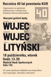 19 października w godz. 11.00 – 12. 45 w Nowe Kino Pałacowe odbędzie się bezpłatny pokaz filmów: „Stanisław Barańczak”, prod. Uniwersytecki Studio Filmowe UAM, 2013 rok (38 min.) i „Układanie życia” – film o Wiktorze Woroszylskim, reż. Antoni Krauze, 1998 rok (50 min). Wstęp wolny.